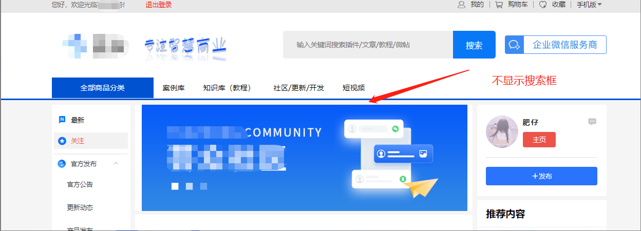 2、关闭原模块搜索:当前仅支持知识库和微社区,勾选后,原模块中的独立搜索框将不再显示。