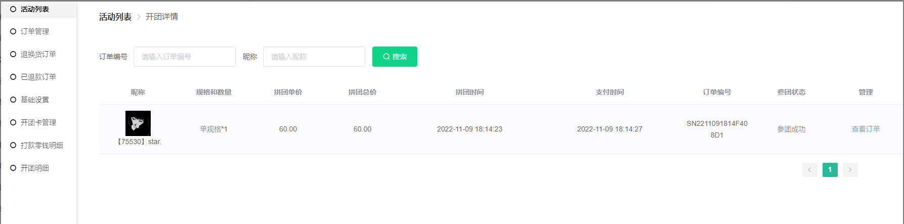 5) 点击查看详情可查看到该团的订单信息相关