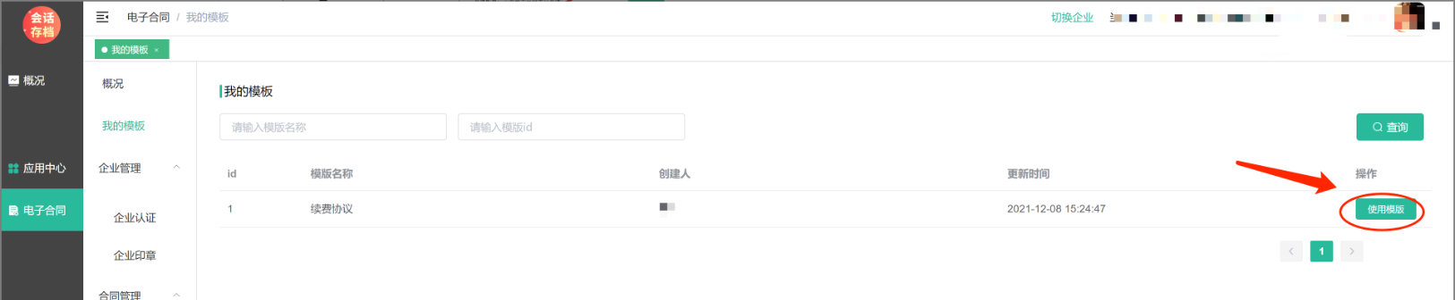 电子合同--我的模板一栏中会显示我有权限使用的模板。